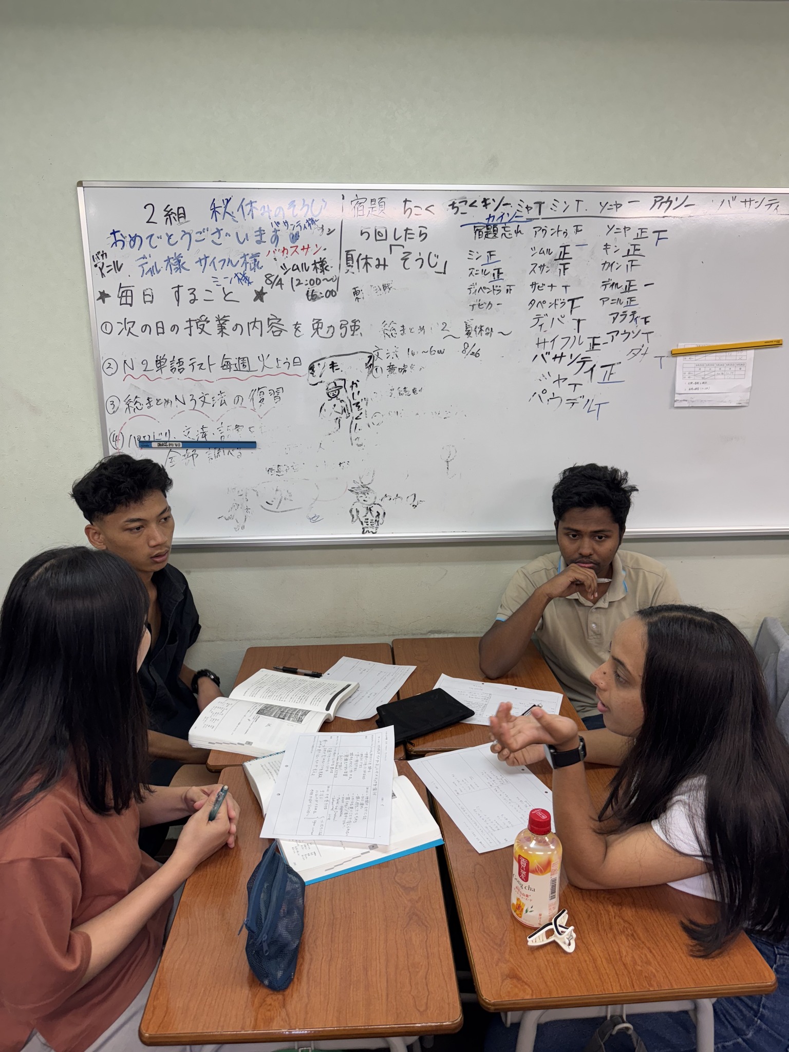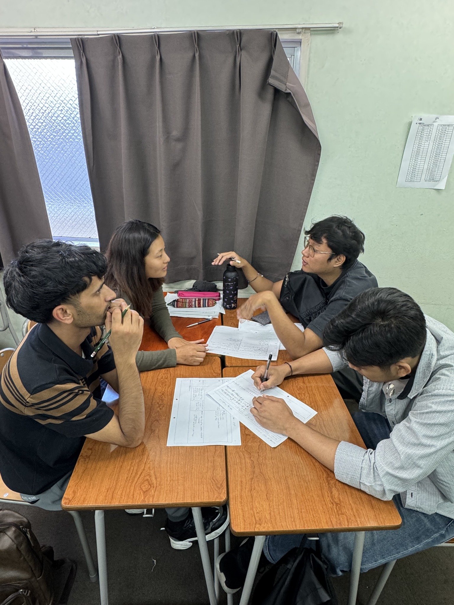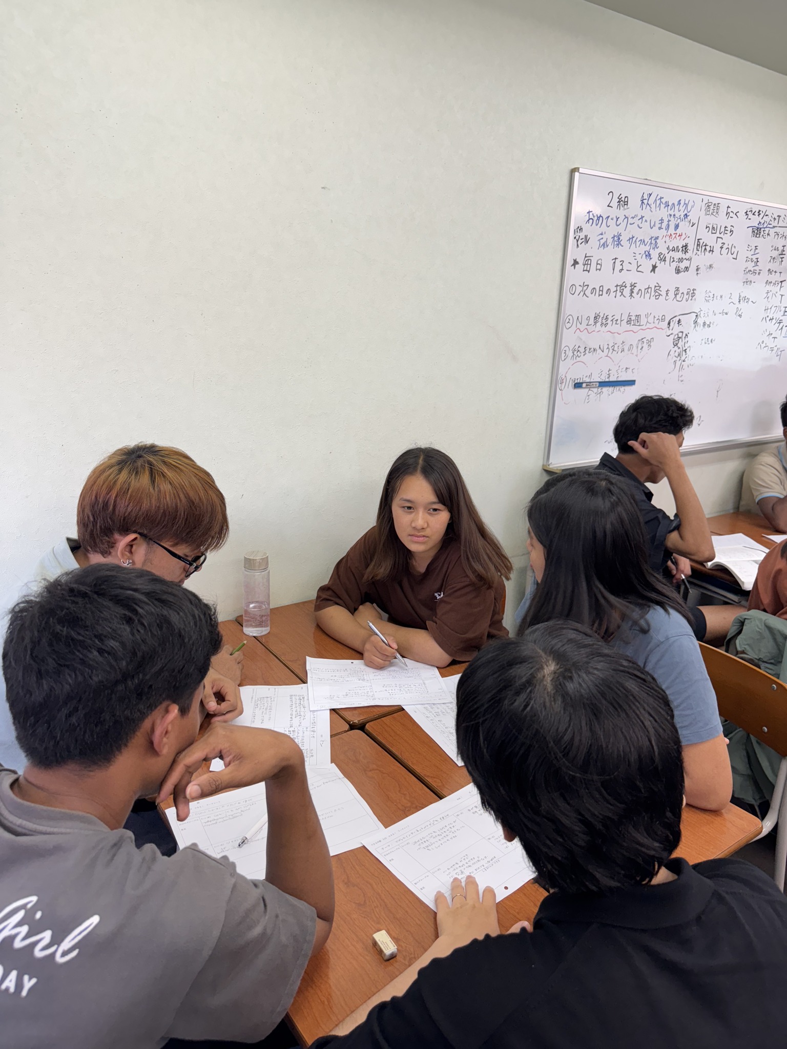 各グループ、3か国以上の学生が集まって、日本語で活発に意見交換。