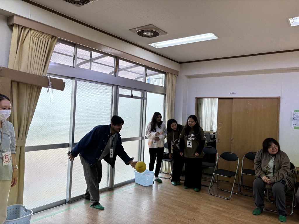 スリーアイズ 11月4日 生野区発祥のスポーツ スリーアイズに今月も参加しました。 今回は学生4人での参加! . 学生1チームとご参加の皆さん2チームの 3チーム、1勝1敗の三つ巴と接戦 . 学生の活躍で最高得点の2点を獲得! しましたが、決勝戦で惜しくも優勝を逃してしまいました…。 . 今回は優勝賞品にカステラがありましたが、 残念ながらもらうことができませんでした。 . 「次回は優勝するぞ!!」と気合の誓いをして ハイタッチ♩ とても楽しい時間を過ごすことができました◎