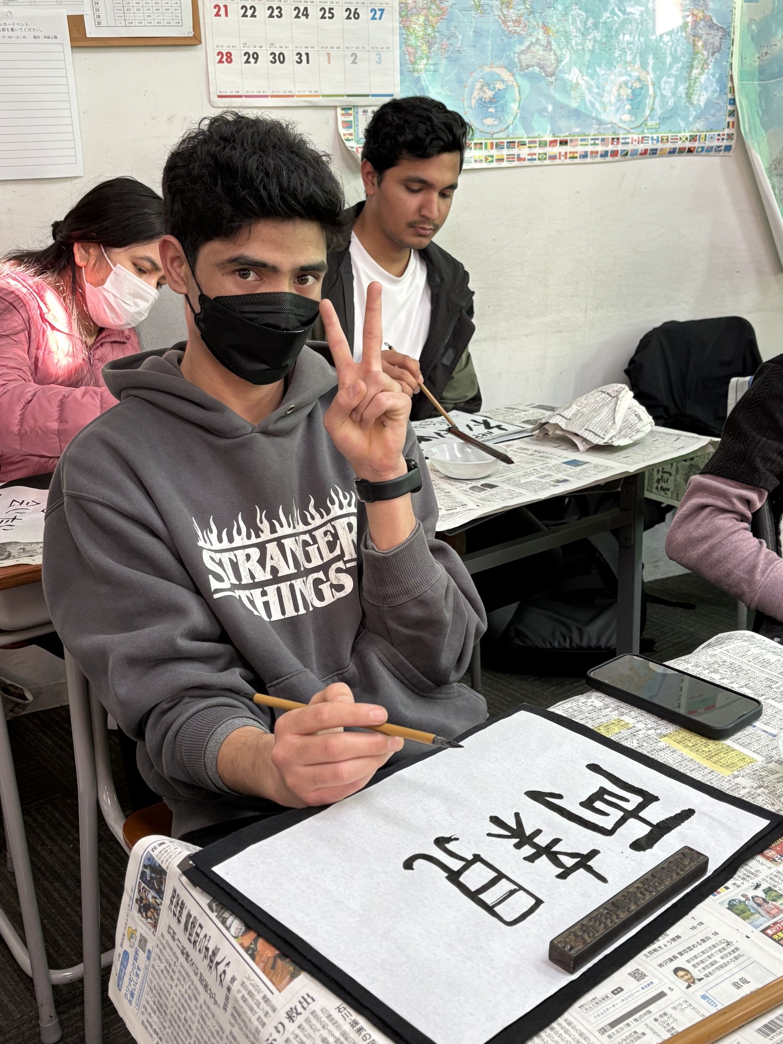 鉛筆で下書きして筆でなぞるスタイルの書道が行われていました。笑