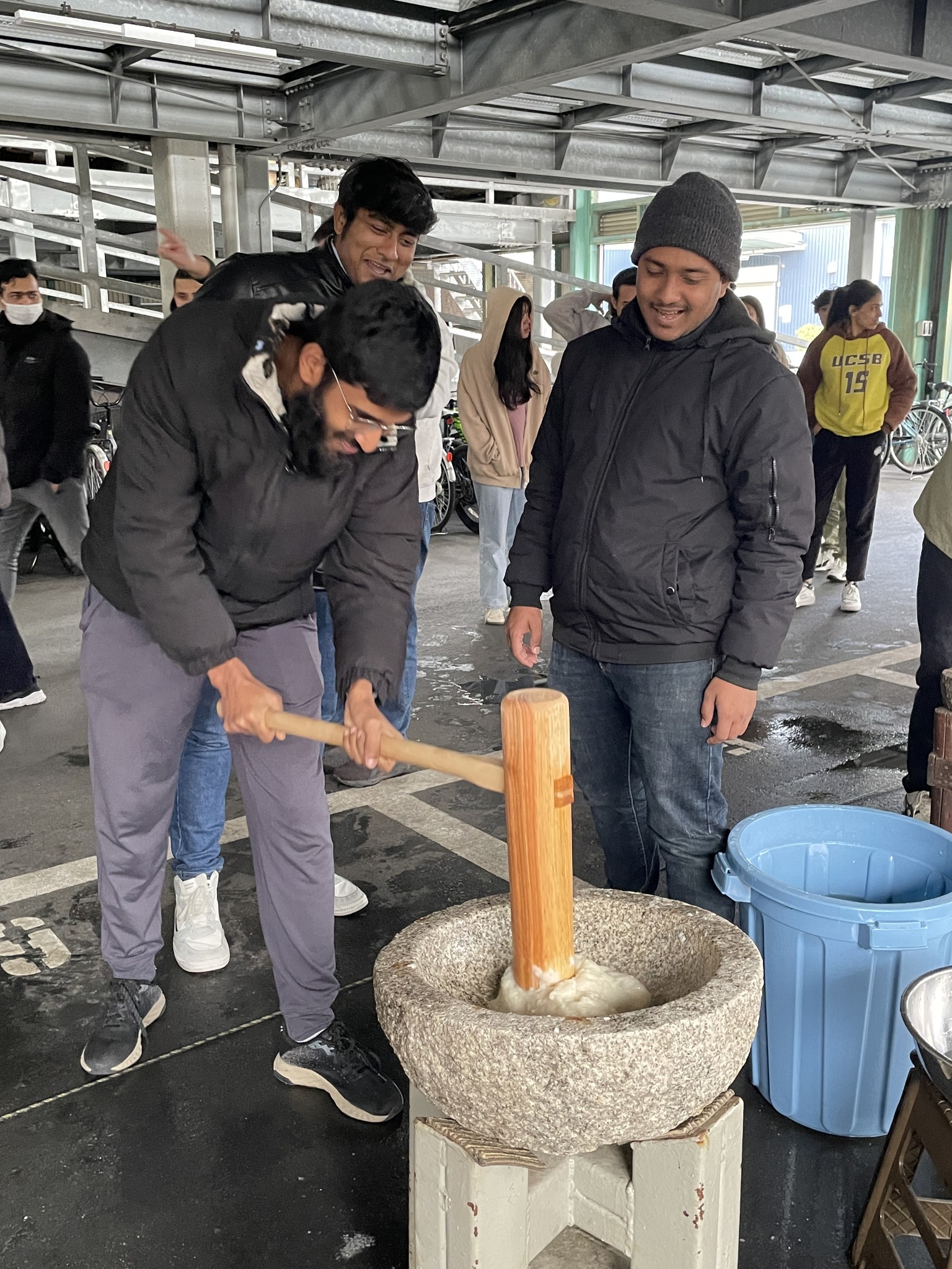 杵が重くて3回つくのが難しい学生も
