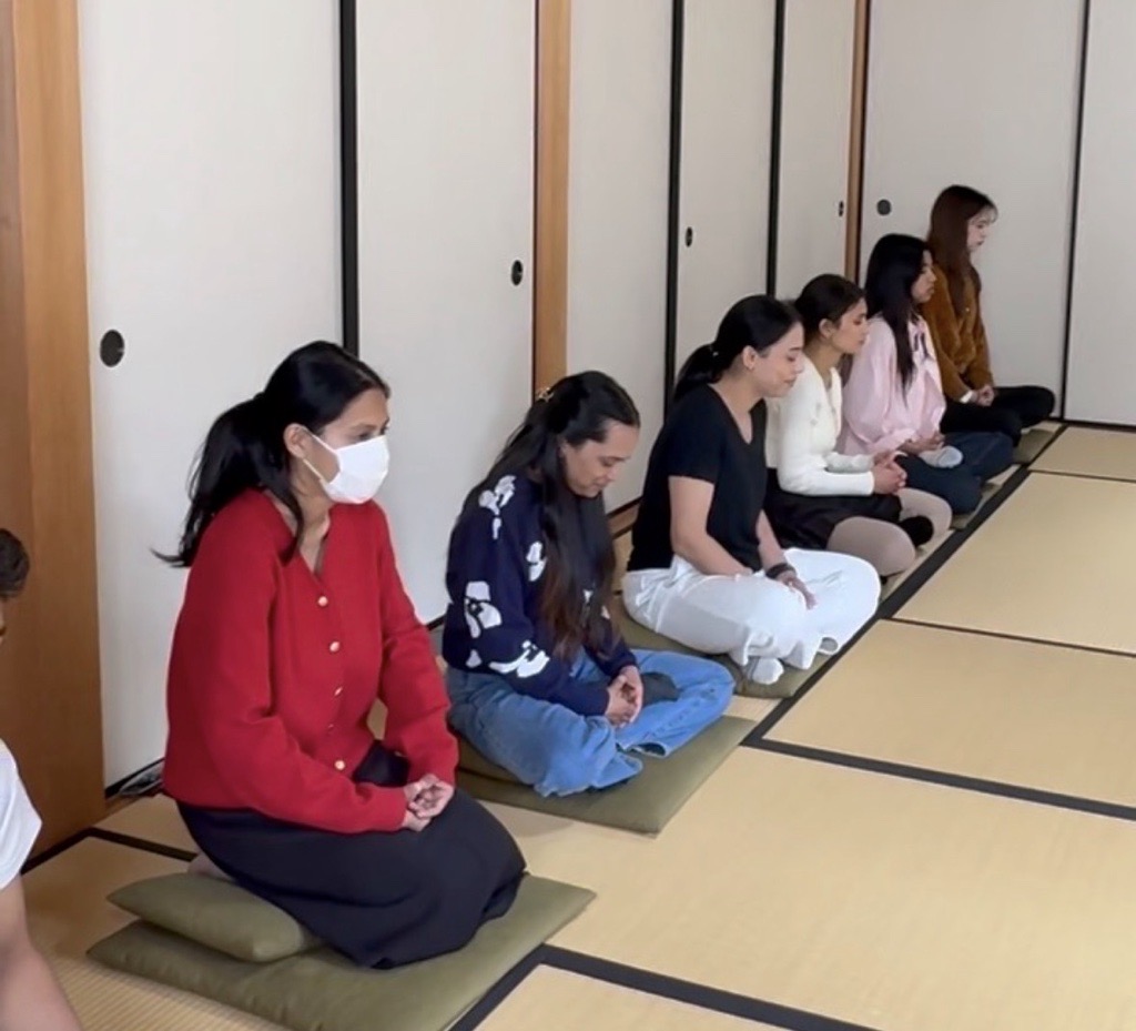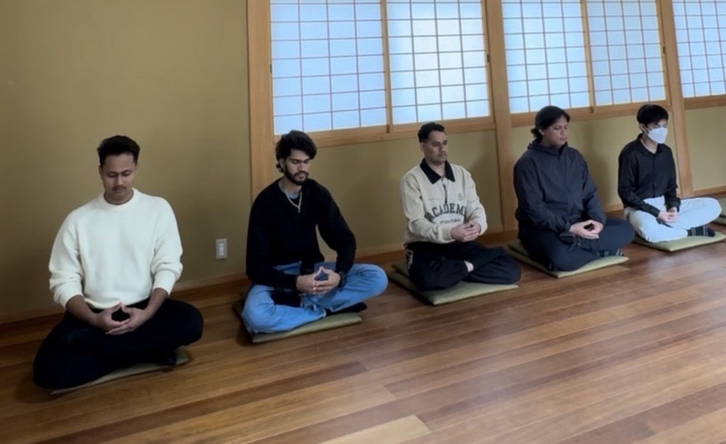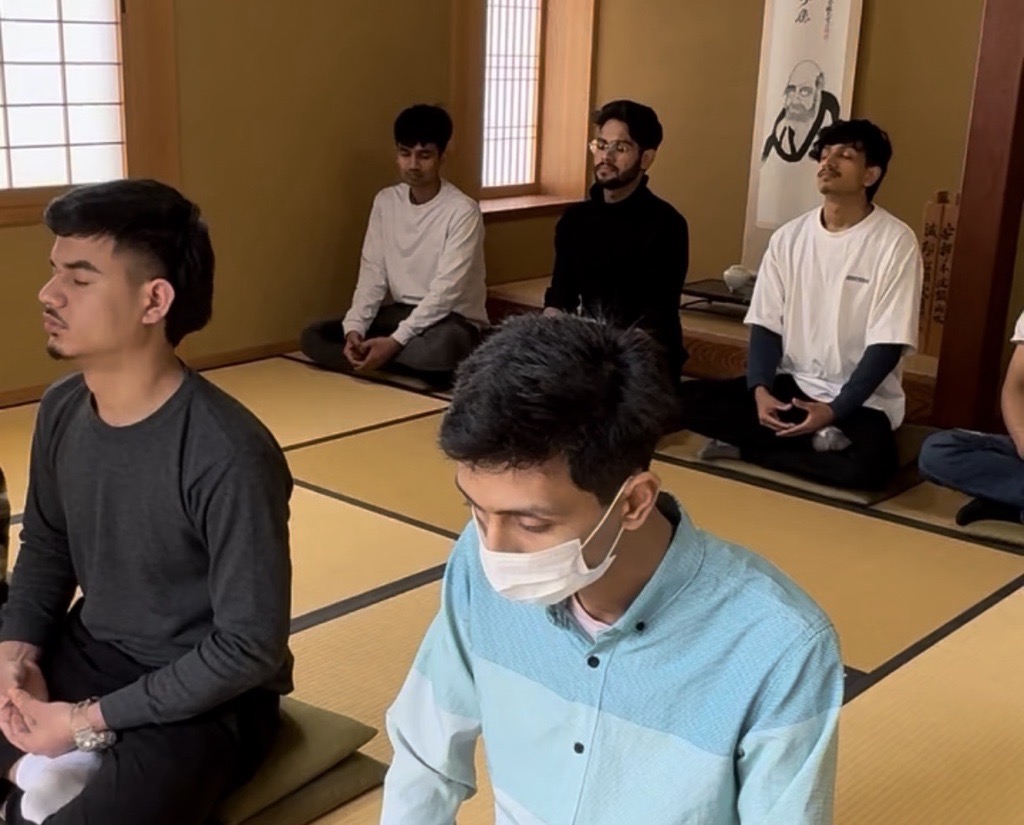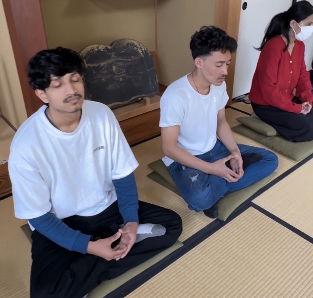 先日「心をリラックスするため」「自分を見つめるために」坐禅をすると自習をした学生たち